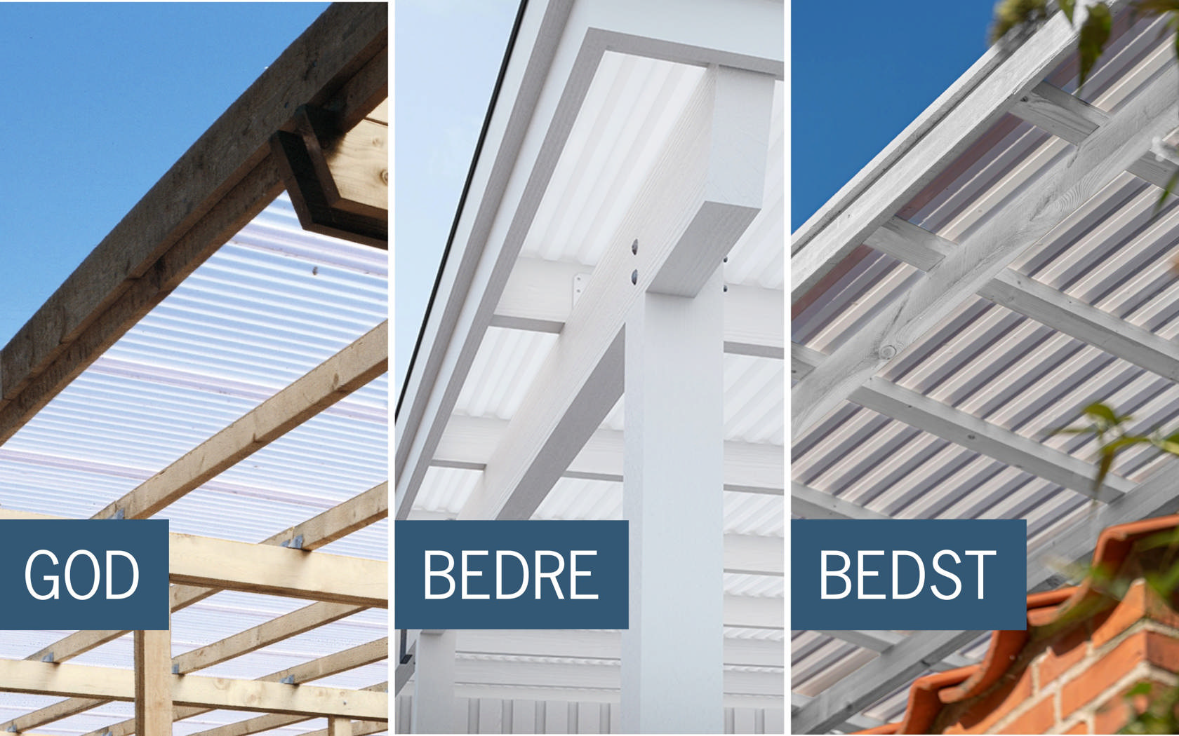 Plastmo Trapezplader fås i 3 kvaliteter – god, bedre og bedst.