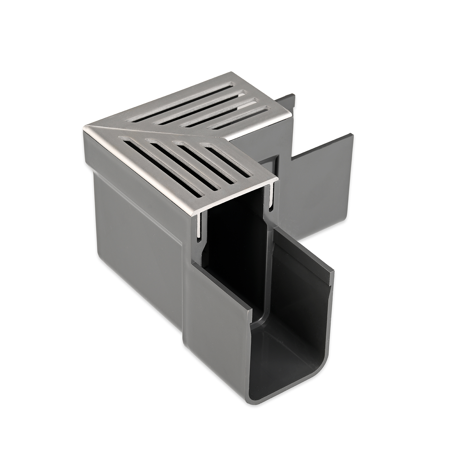 SlimLine Hjørnesamlestykke med rist i anodiseret aluminium.