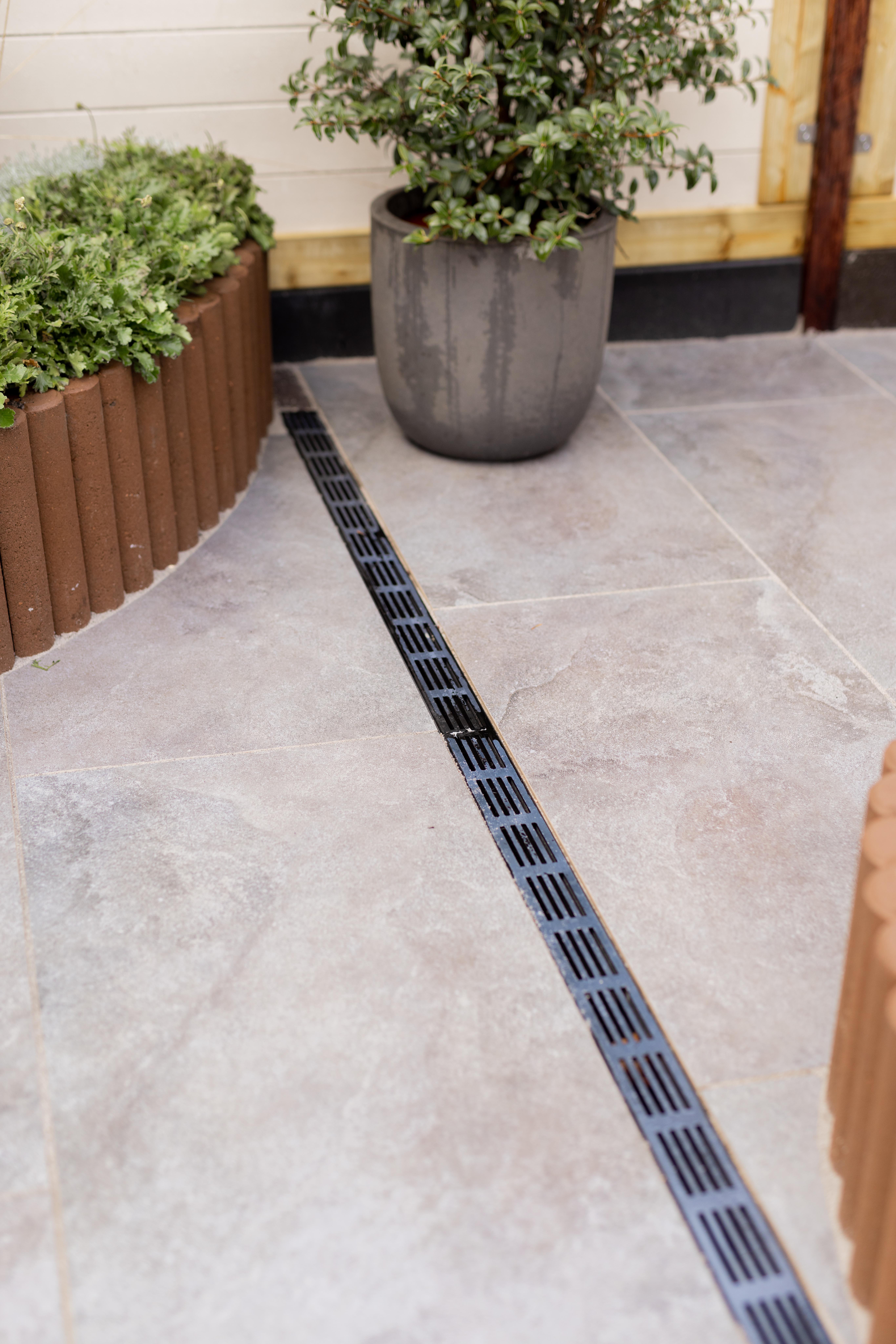 - SlimLine Linjedræn er en diskret og elegant drænløsning til områder omkring boligen, hvor der udelukkende er trafik af gående og cyklister.