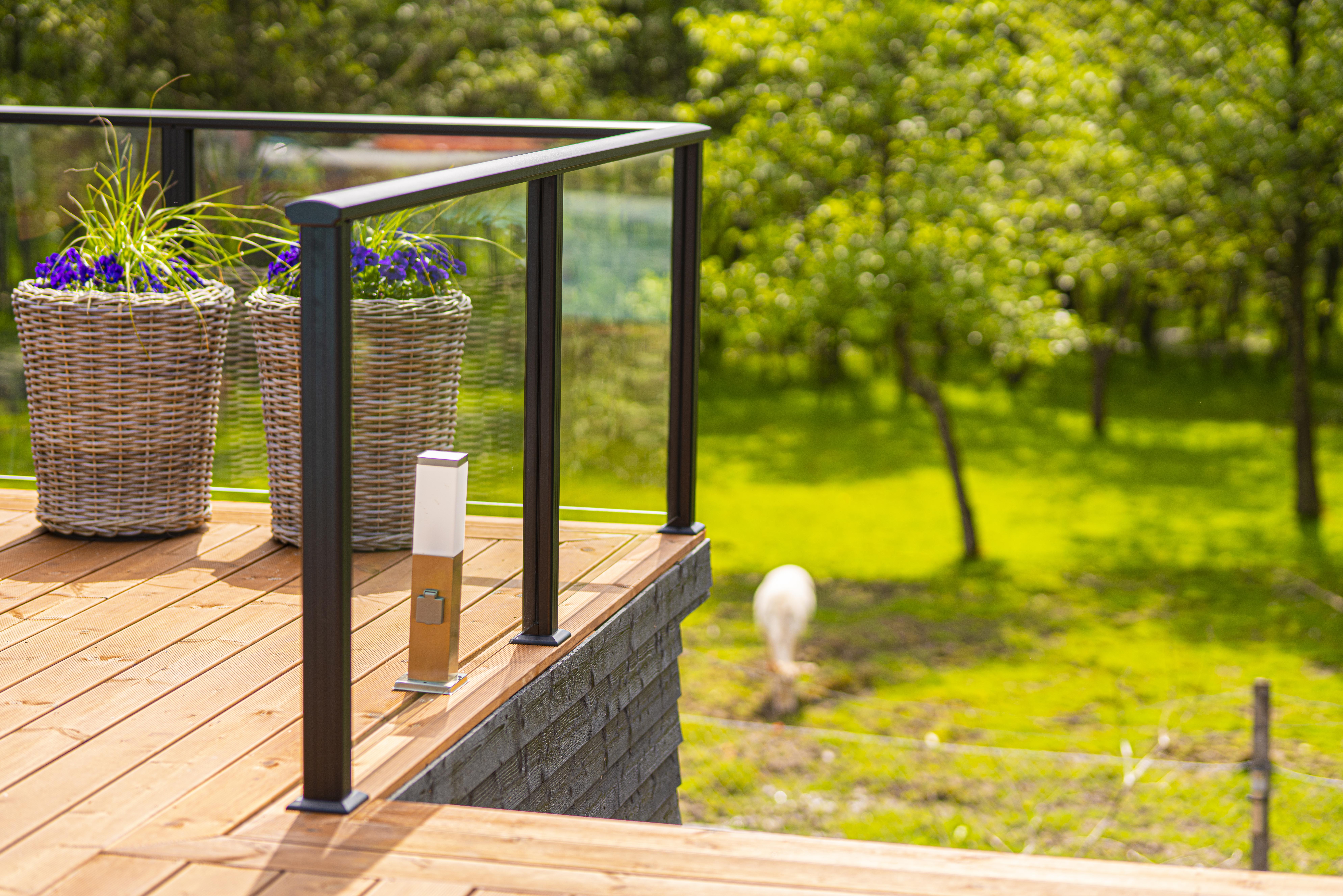- Rækværket kan anvendes til at skabe rum på terrassen, men det er også ideelt som afskærmning for vind og vejr, og som sikkerhedsværn på altaner og lignende.